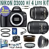 NIKON D3000 w/ NIKON 18-55 VR LENS + NIKON 55-300 VR LENS + 2X LENS + .45X SUPER WIDE ANGLE LENS + 16 GIG MEMORY CARD + 3 YEAR CELLTIME WARRANTY via the link below