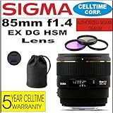 Sigma 85mm F1.4 EX DG HSM Lens for Canon Digital SLR Cameras + 3 Piece Filter Kit with Case + Lens Case + Celltime 5 Year Warranty the link below