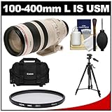 Canon EF 100-400mm f/4.5-5.6 L IS USM Telephoto Zoom Lens with Hoya UV Filter + Case + Tripod + Cleaning Kit for EOS 60D, 7D, 5D Mark II III, Rebel T3, T3i, T4i Digital SLR Cameras SALE