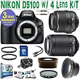 NIKON D5100 w/ NIKON 18-55 VR LENS + NIKON 55-200 VR LENS + 2X LENS + .45X SUPER WIDE ANGLE LENS + 16 GIG MEMORY CARD + 3 YEAR CELLTIME WARRANTY the link below