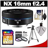 Samsung 16mm f/2.4 NX Ultra Wide Pancake Lens (Black) with 32GB Card + Tripod + 3 UV/FLD/CPL + Accessory Kit for NX20, NX200, NX210, NX1000 Digital Cameras SALE
